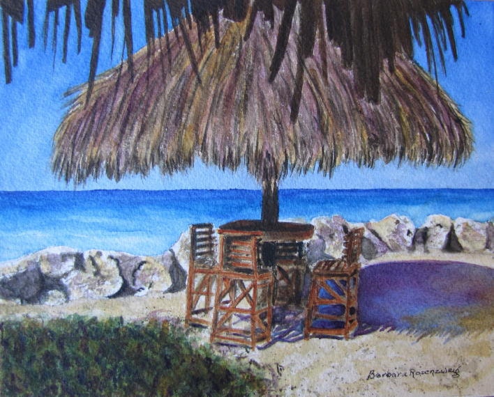 Beach Paradise, Barbara Rosenzweig, Art Print, Etsy, Exotic Reproduction of OOAK Original Watercolor Painting 11x14
